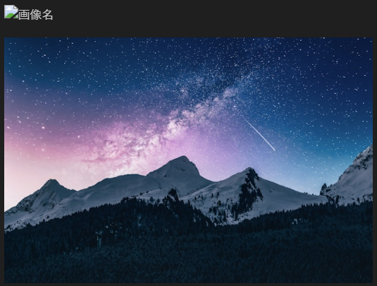 ※[]で指定する文字列は、マークダウンのHTML変換後にimgタグのalt属性の値としてセットされます。